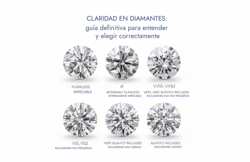 ¿Qué claridad de diamante elegir? Hoy comparamos Flawless, VVS, VS y SI para que hagas la mejor inversión. Sigue leyendo nuestra guía experta para encontrar tu diamante perfecto ahora mismo