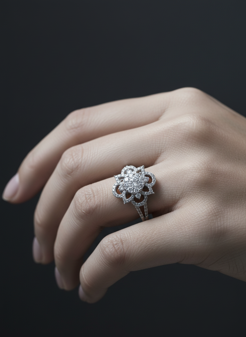 Más que un anillo, es una declaración de estilo: un rosetón que florece en tu mano, reflejando la pureza de la luz y la fuerza de la feminidad.