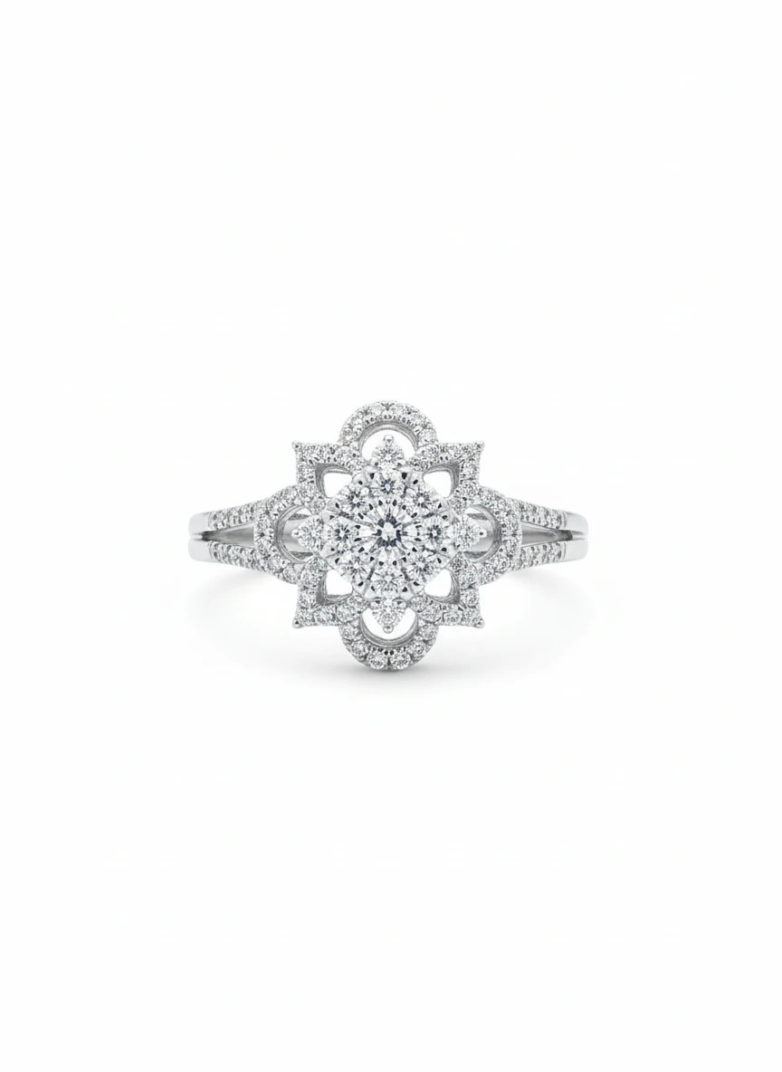 Anillo de Diamantes Pétalos de Brillantes en Oro Blanco 18k.