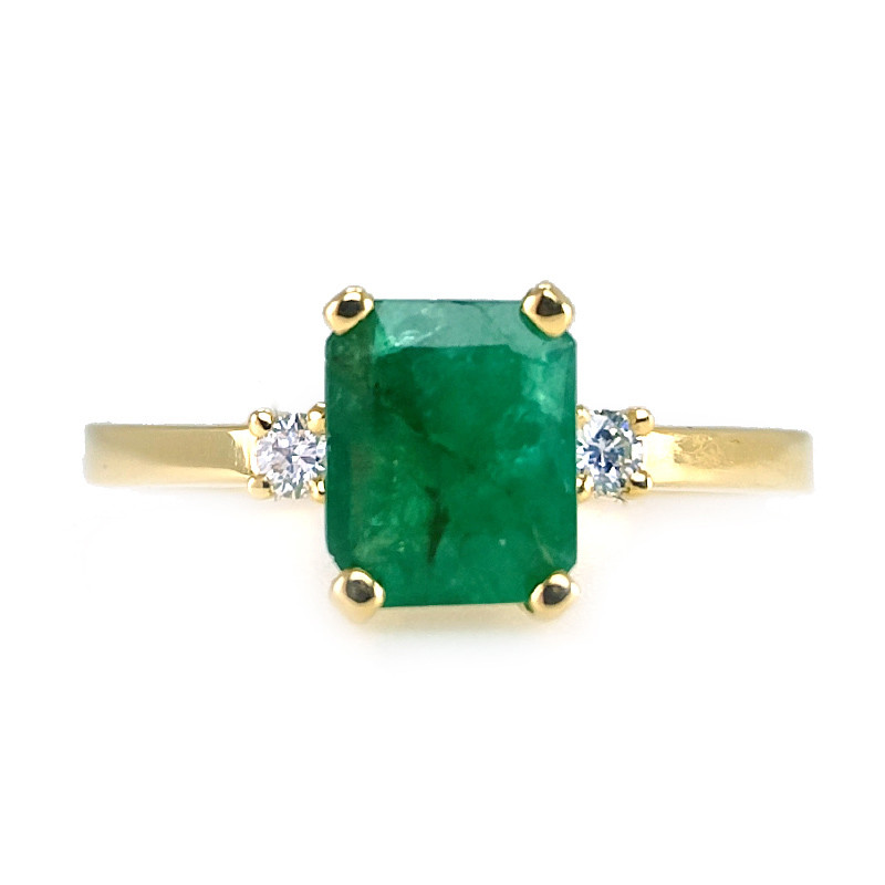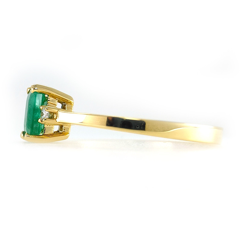 Anillo de oro amarillo con esmeralda natural de origen brasileño y diamantes.