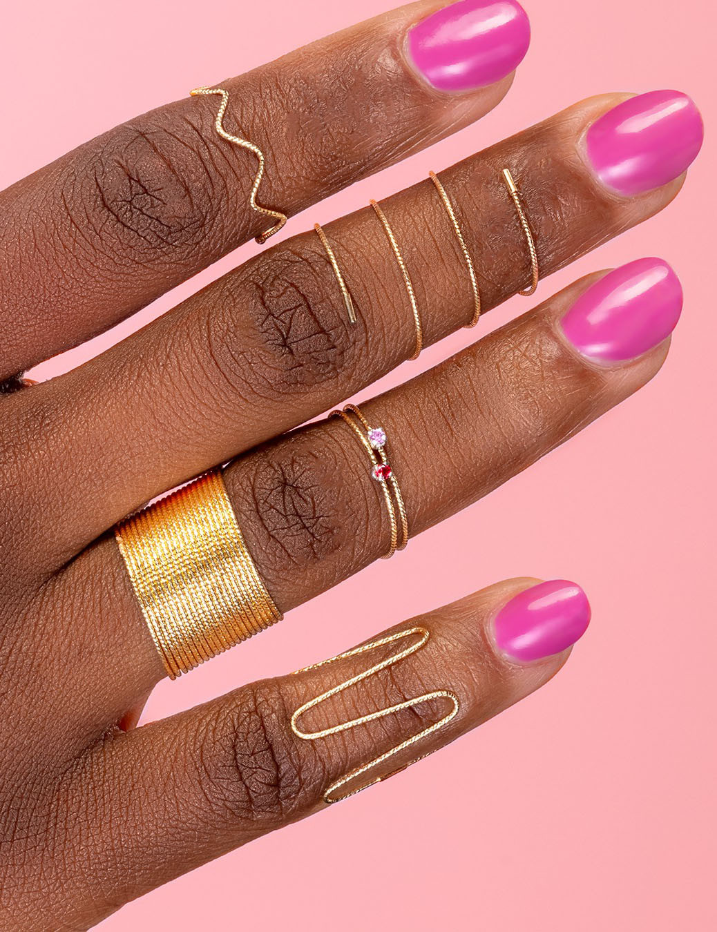 Anillo de media espiral en oro amarillo. Un anillo sencillo, elegante y original elaborado con hilo de oro MagicWire®.