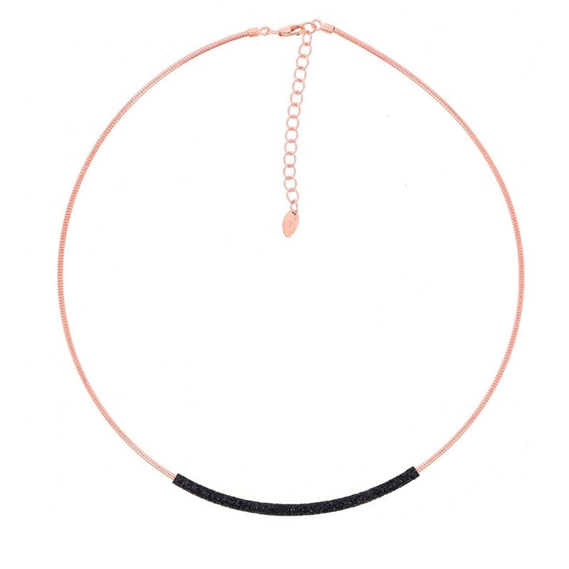 Collar Pesavento DNA elaborado en plata rosa 925 con "Polvo de Sueños" o micropartículas reflectantes en color negro. Gargantilla WDNAG179 de la colección DNA.