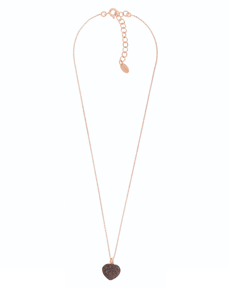Collar Pesavento de corazón con Polvo de Sueños marrón. Es una gargantilla con cadena de eslabones en plata 925 y baño de oro rosa de 18 quilates. La medida total es 42 cm, y puedes ajustar a 40 o 38 cm.