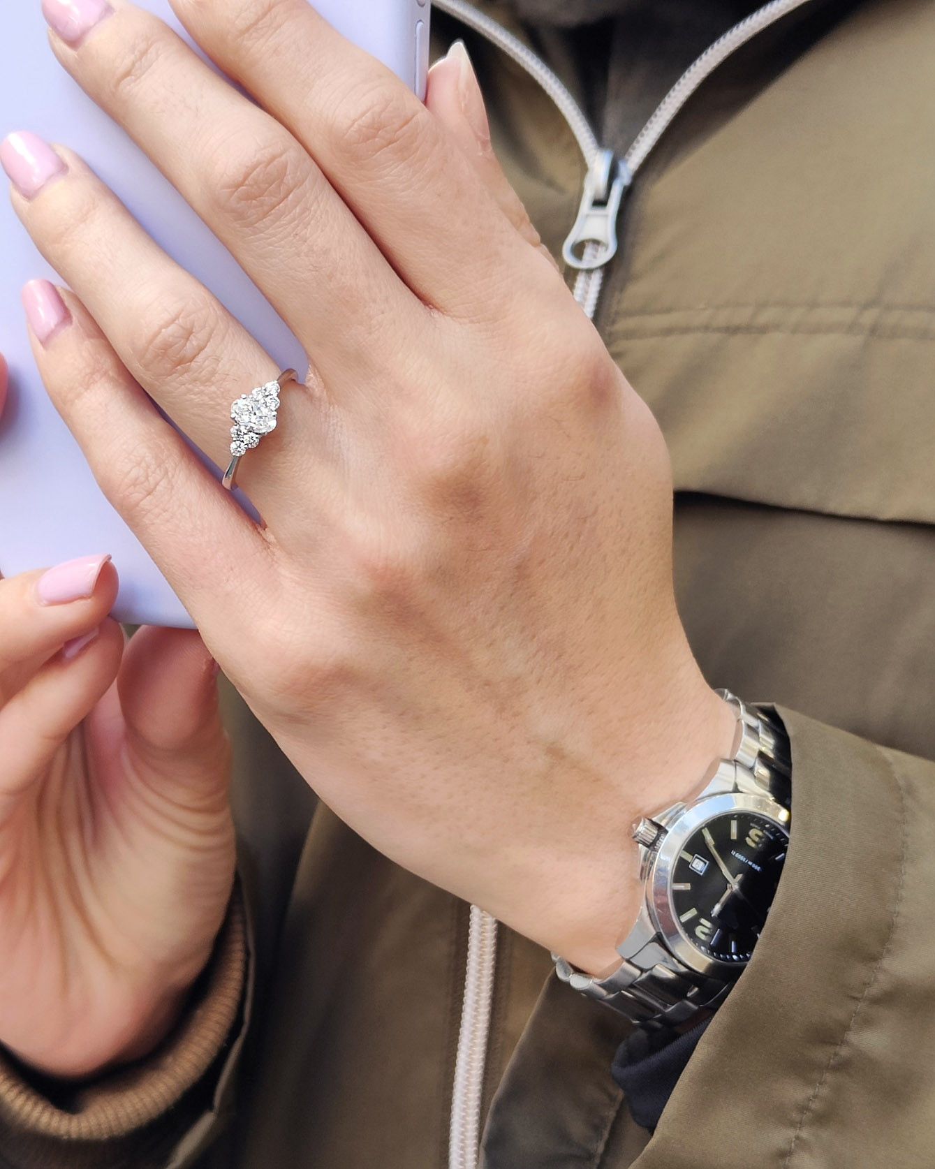 Al elegir este anillo, estás eligiendo un legado; una pieza que la acompañará y elevará su estilo en cada ocasión. En él, encontrará no solo un accesorio deslumbrante, sino un recordatorio constante del amor que comparten, una joya que habla del compromiso, la pasión y la historia que han construido juntos.