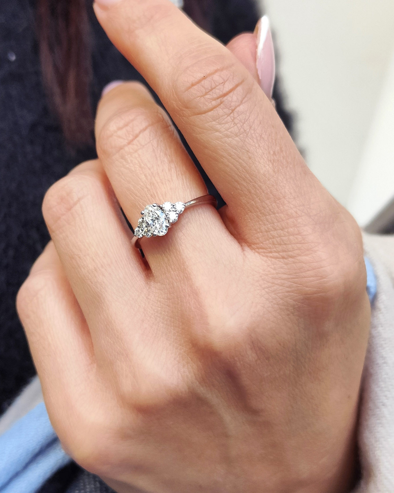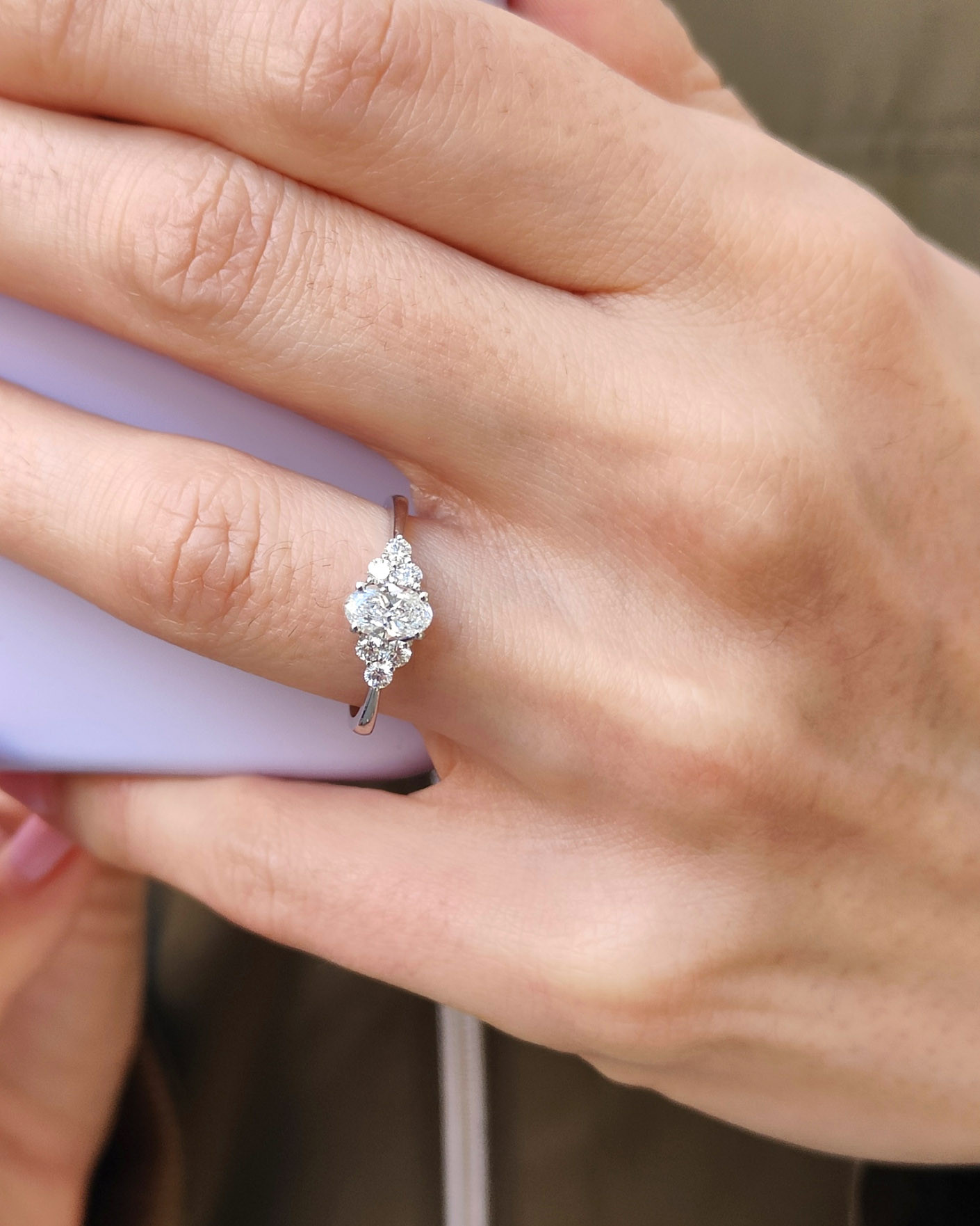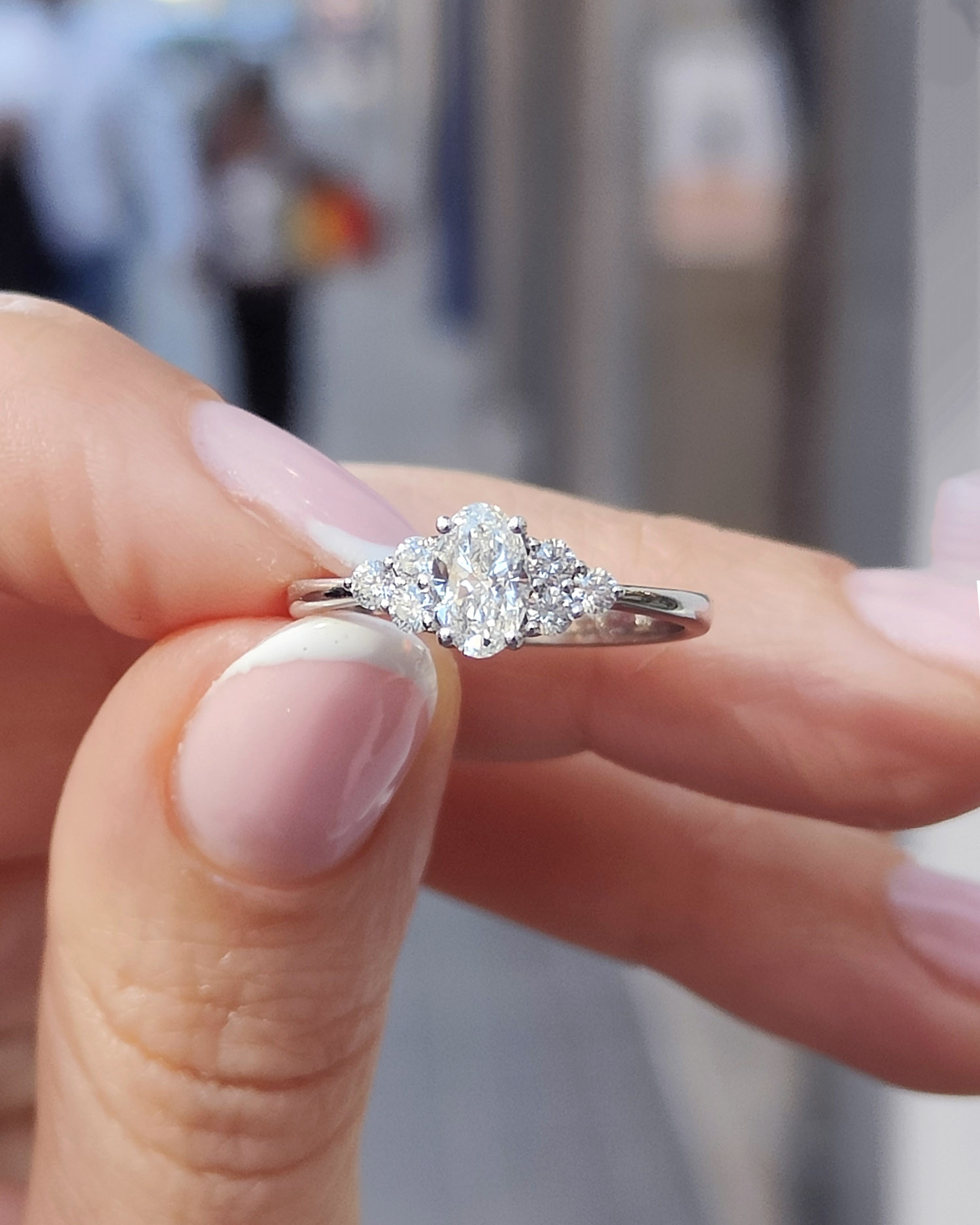 Grace: Anillo de Diamante Oval 6,5 x 4mm y Trío de Diamantes Laterales