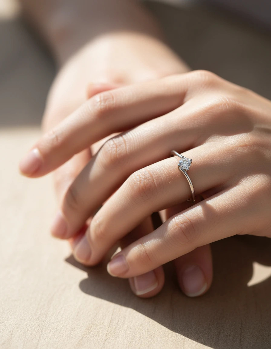Florencia: Anillo Solitario de Diamante Oro Blanco 18k