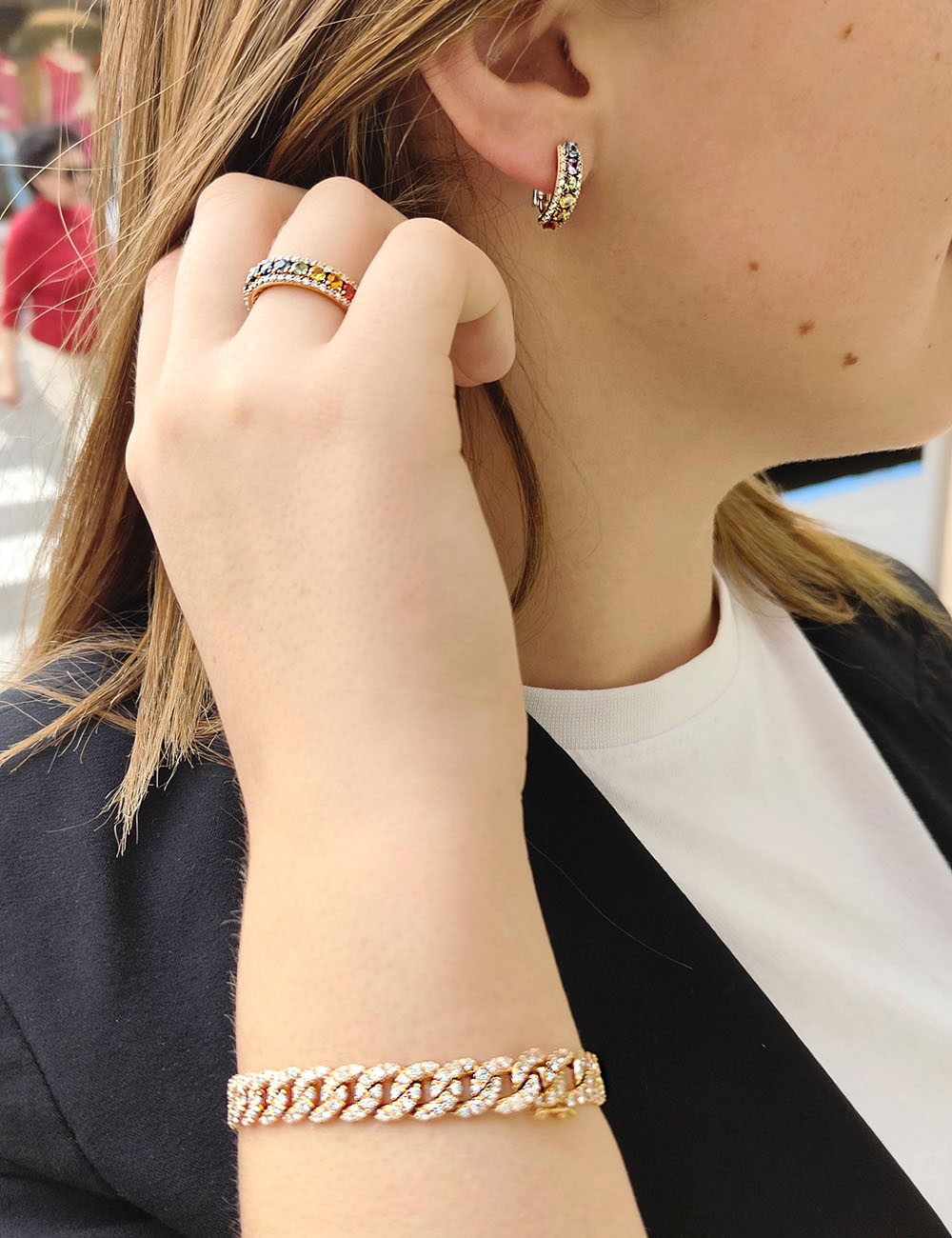El anillo rainbow de zafiros en múltiples colores combinados con diamantes de talla brillante.