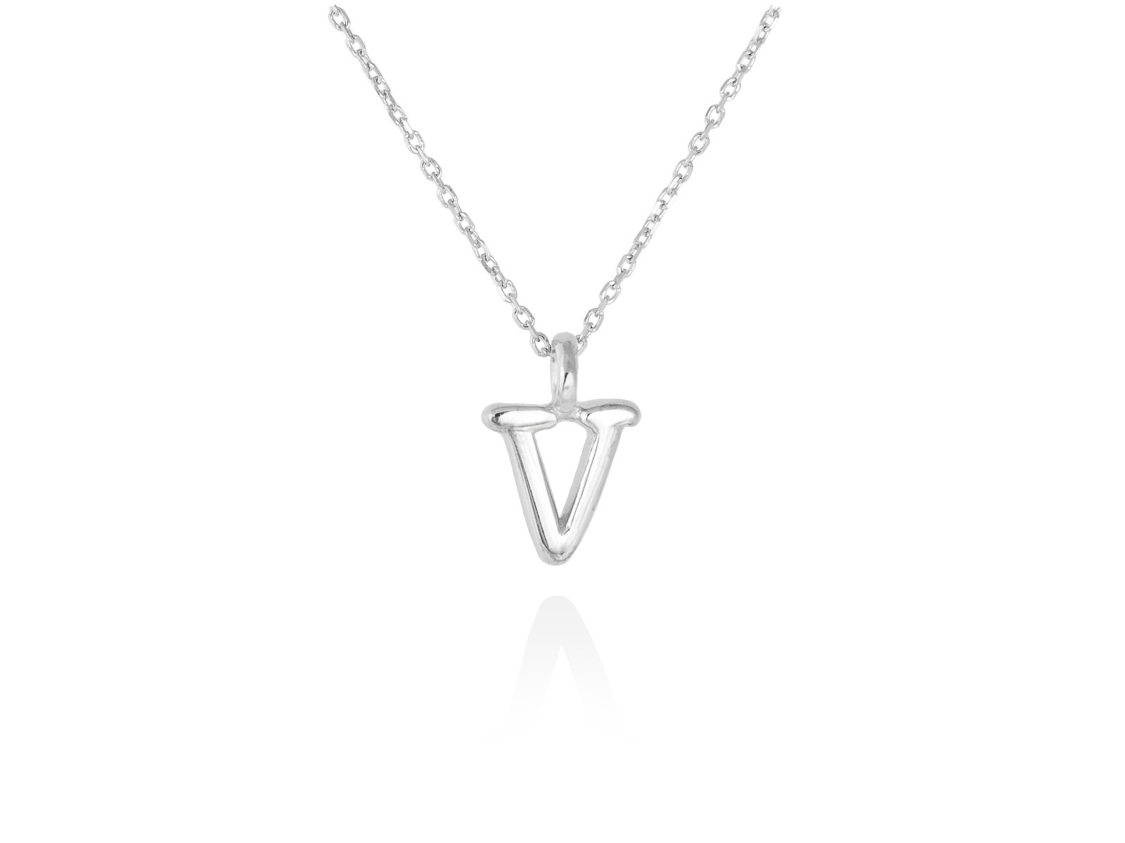 Collar Inicial Letra V: Una Distinción en Oro Blanco 18k