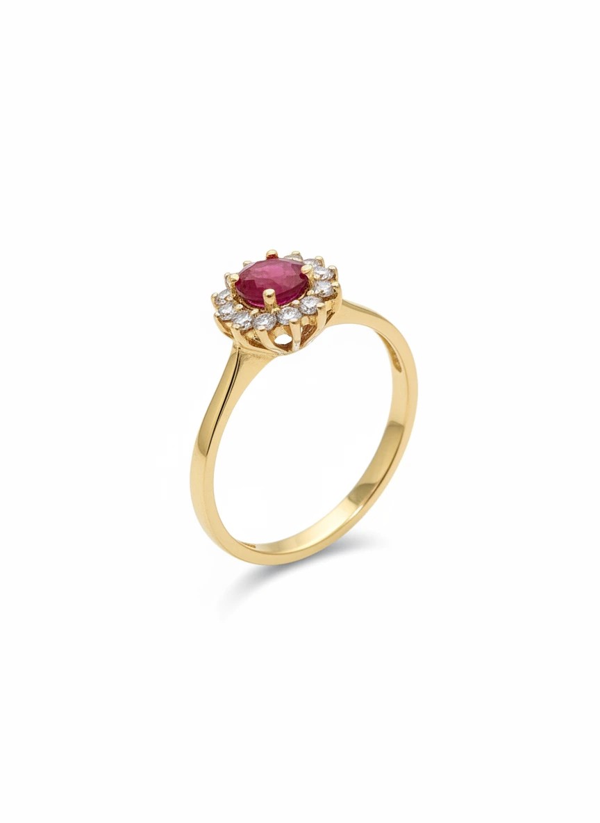 Anillo Victoria de Rubí y Diamantes en Oro Amarillo 18k · La joya que convierte cada ocasión en un recuerdo eterno