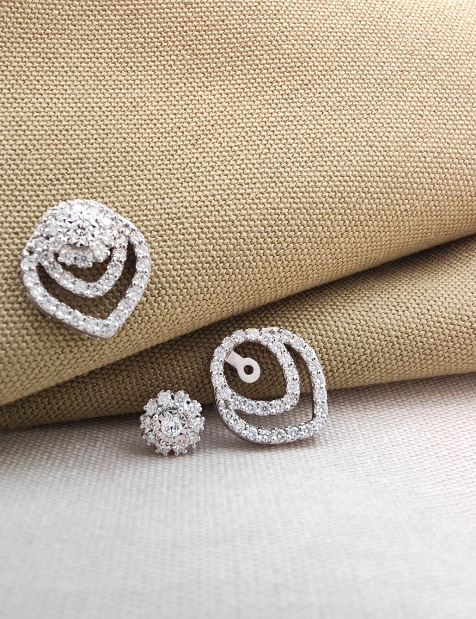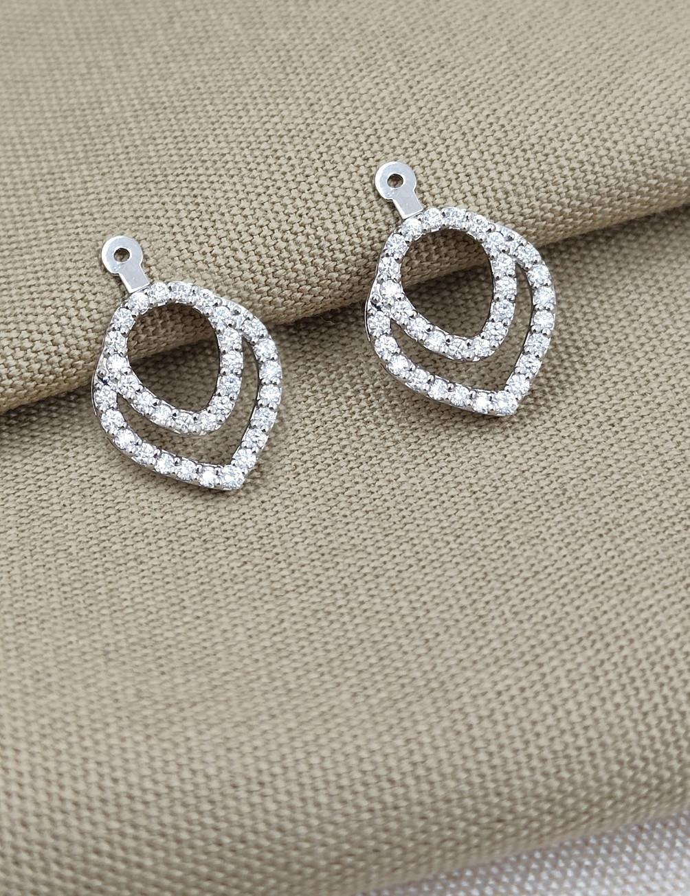 Transforma tus pendientes con estas exquisitas orlas articuladas en Oro Blanco 18k, adornadas con 0.71ct de diamantes talla brillante (E-SI, Excellent Cut). Versatilidad y lujo en cada detalle.