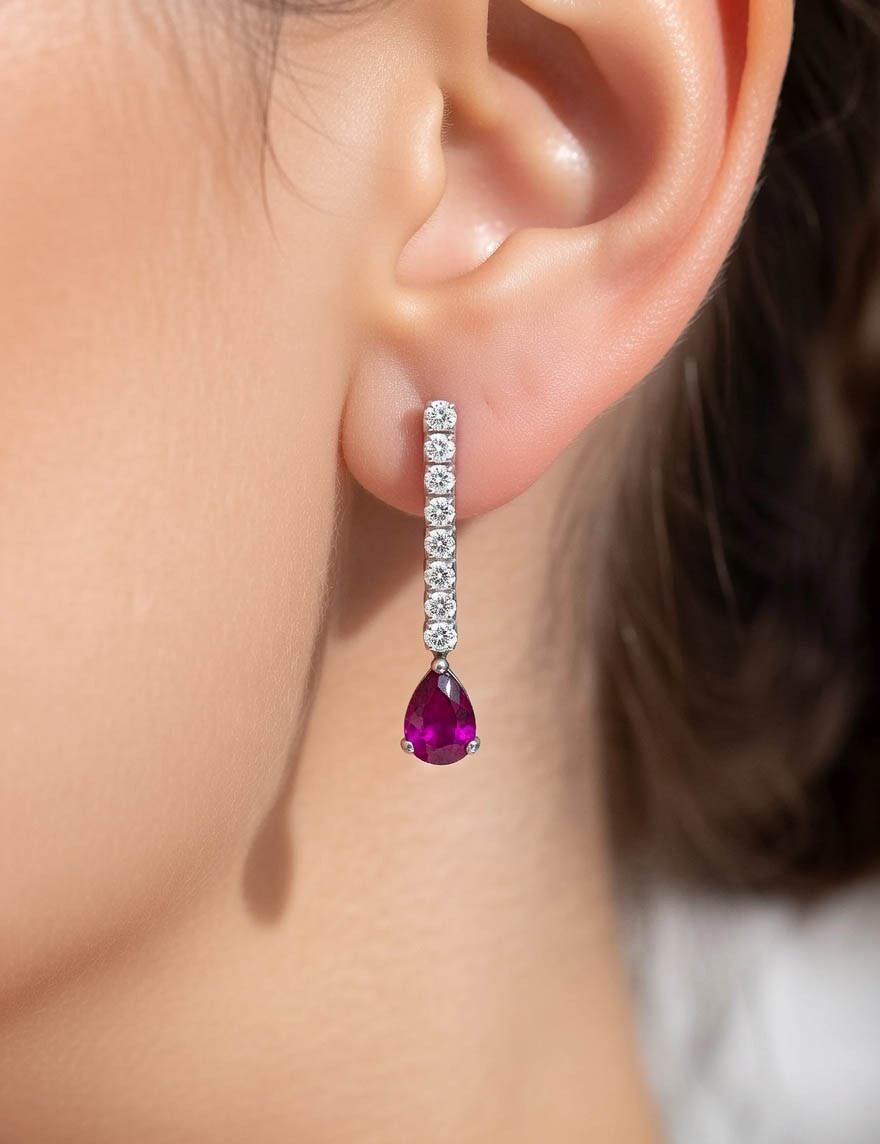 Anna: Pendientes Rubí y Diamantes en Oro 18k