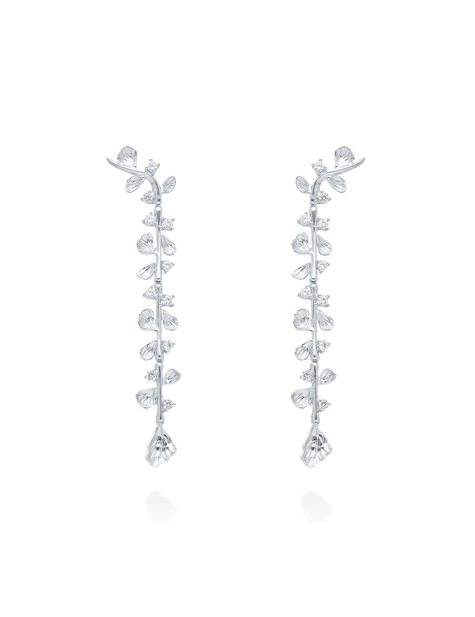 Los pendientes Guipur XL destacan por su diseño largo en cascada con motivos de hojas, decorados con circonitas que aportan brillo y movimiento.