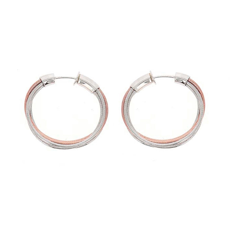 Pendientes Pesavento elaborados en plata de 1ª ley 925, con baño oro rosa y rodio. Se trata del modelo WDNAO221 de colección DNA, unos pendientes flexibles formados por hilos metálicos con baño de oro rosa (3 micras). Sencillamente espectaculares.