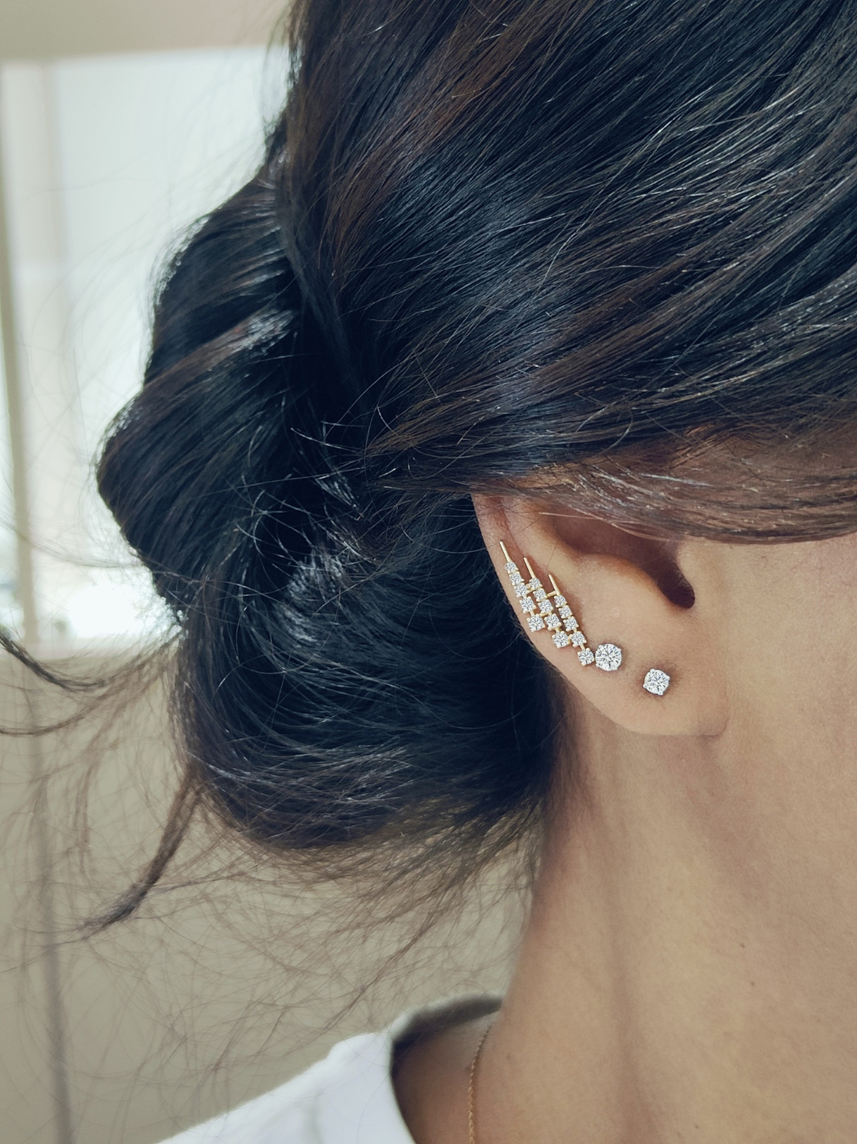 Pendientes de oro con diamantes, de diseño moderno con lanzas escalonadas. Su brillo y elegancia los hacen perfectos para ocasiones especiales o para un estilo diario sofisticado.