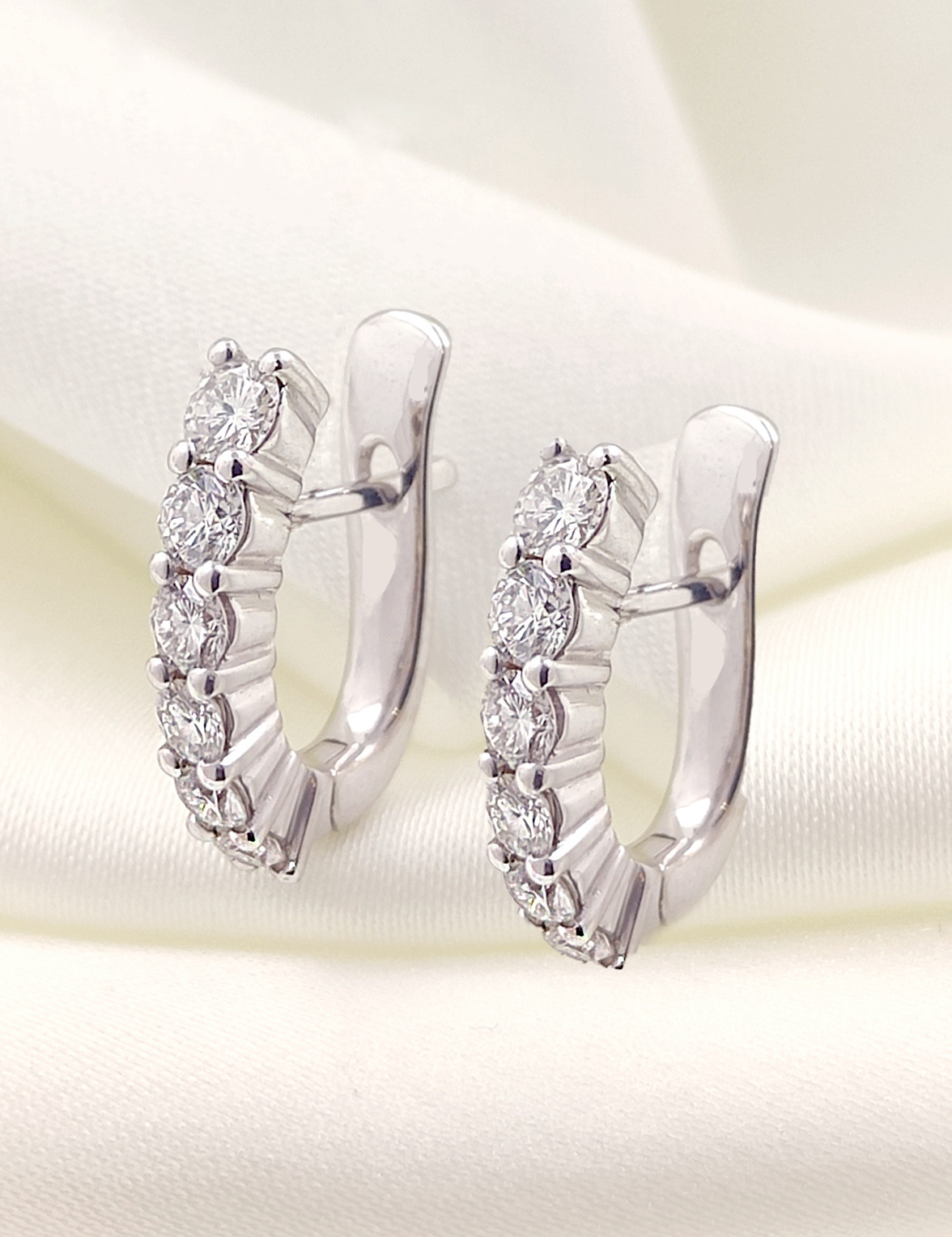 Una línea de diamantes estilo riviere degradé engastados sobre oro blanco 18 quilates. Sofisticación en cada detalle de este par de pendientes de aro captan la luz con cada movimiento.
