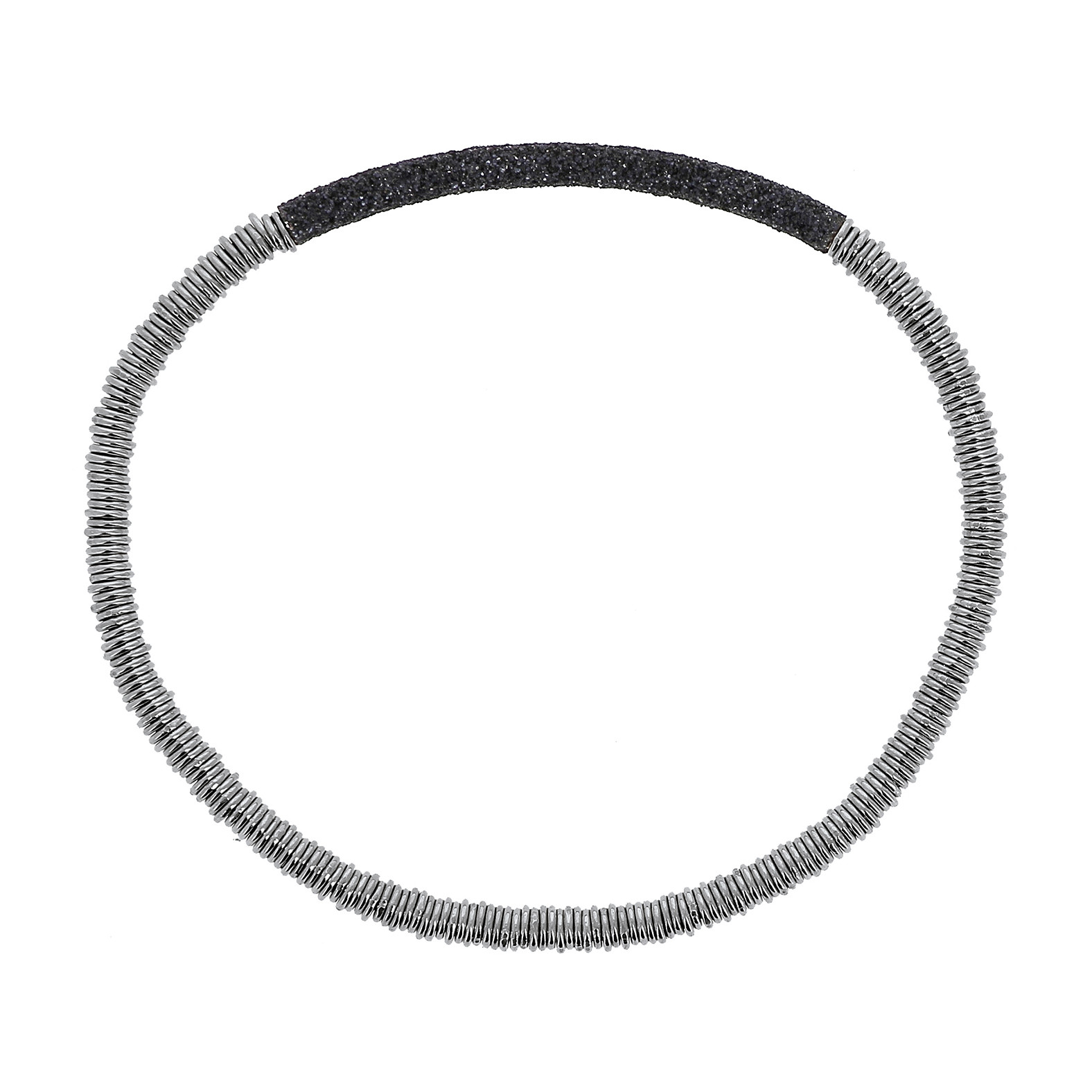 Original brazalete elástico Pesavento elaborado en plata con baño de rutenio y Polvo de Sueños. La pulsera WPLVB1193 tiene acabado color negro gracias a su revestimiento de rutenio.