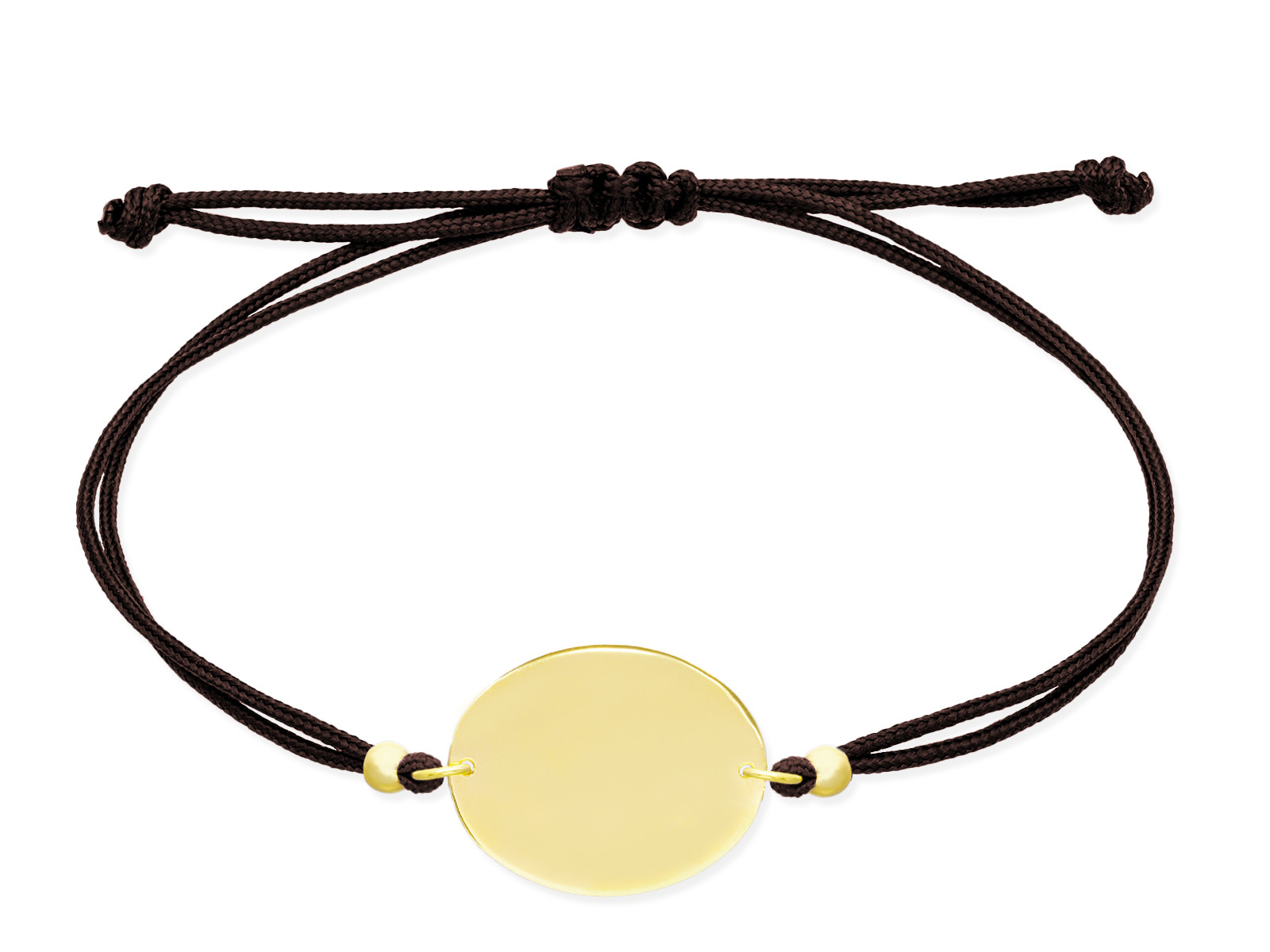 Pulsera Chapa Ovalada en Oro 18k con Nylon Negro